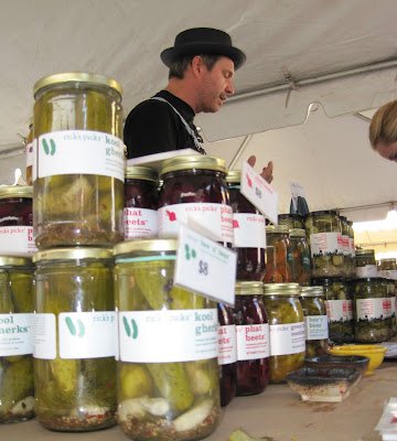 I didn't have to even ASK Rick Field of Rick's Picks for a lock of hair to prove our kinship, he just came right on over to my tent like family...we posed for family portraits with the big pickle but damn if my camera didn't get stolen. Rick was being generous that day with other samples, pickle related samples, as well-he had fried smokra and Handy Corn quesadillas. I haven't officially talked about Handy Corn yet, but oooooh lordy, is it good. It's a delicious corn relish with a pickle twang that drives me wild! I'm really sorry that I missed out on those samples, but it feels good to use a little restraint every once in awhile...I guess...