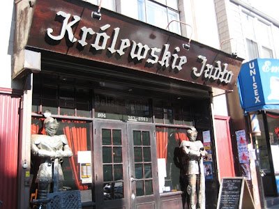 I officially kept my eyes peeled for it in New York but I'll go ahead and admit it-I never came across it myself because I tend to eat in places that serve tacos or corndogs. My friend Xan is the one who ultimately became my Pickle Soup guide. He actually found it in a couple of places but liked King's Feast, a Polish restaurant in Greenpoint, on Manhattan Avenue, the best. Not only is the soup a nice consistency he said, but it also has a nice strong, pickle-y taste. We made a date to meet and eat but I continued to drag my feet. The fear of being a pickle freak that didn't like pickle soup was bearing down on me...