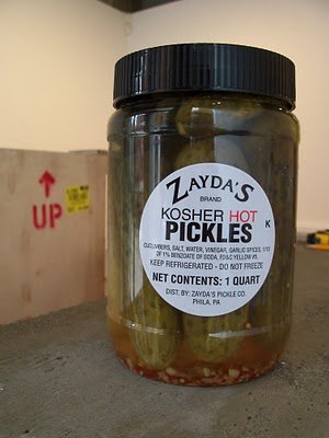 Zayda's Pickles are a regional specialty made by a regional orginal, Steve Slutsky, and I for one, hope it stays that way. A quick google search for Zayda's Pickles turned up a long article about the man behind these pickles and the toilet-seated tricycle he rides around town, but not much else. Steve Slutsky doesn't feel the need to expand his business or cast a wider net for customers...if you live in Philly, you can find his pickles, and if you don't, well, tough titty.