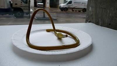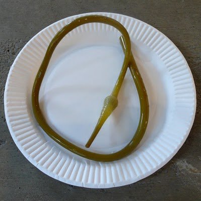 Garlic scapes are the plant that shoot out of the garlic bulb, which is really good to know since I've been telling people it's the "vine that garlic grows on"...shows how much I know. But maybe you'll forgive me, because I've never grown garlic and every time I've taken this jar of scapes out, no one ELSE knows what they are either. I encountered garlic scapes for the first time at the 2006 International Pickle Festival where there was a woman with a gallon jar of them, all tangled up, pulling them out, cutting them up and sharing then with anyone who passed by but it was 3 years later before I had my own jar to feast on (A Feast of Scapes?).